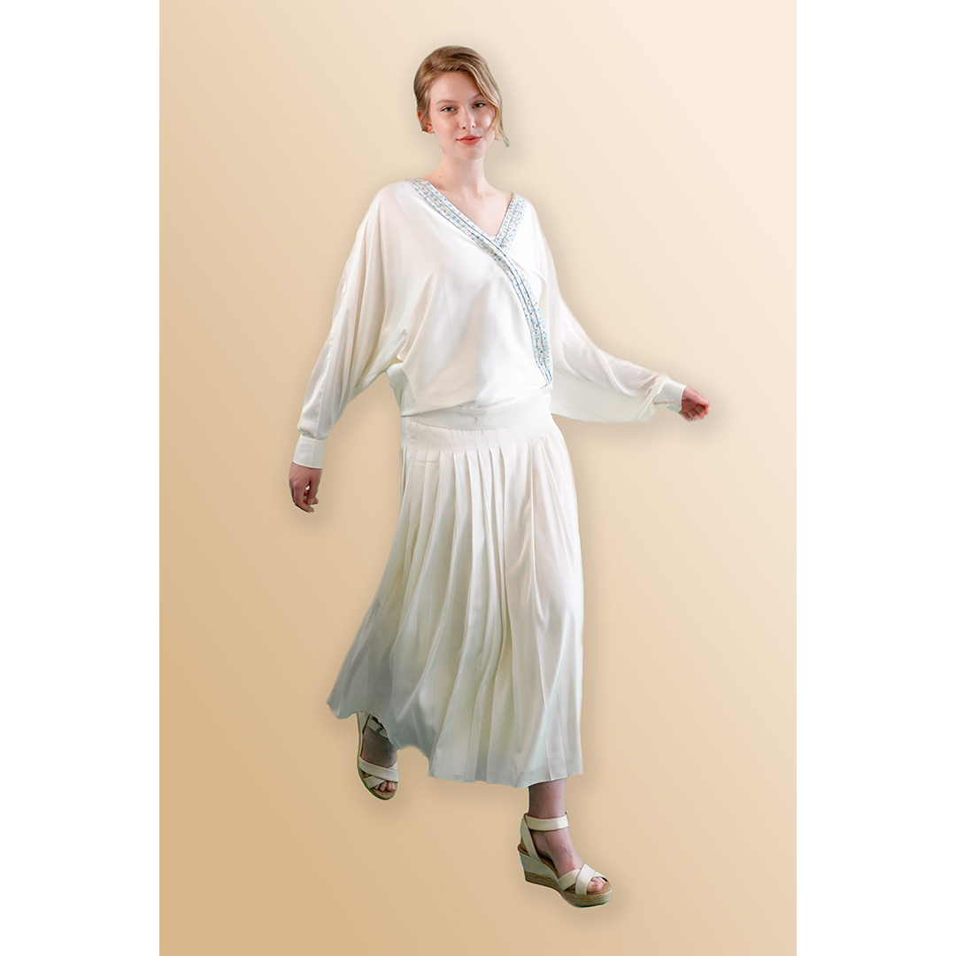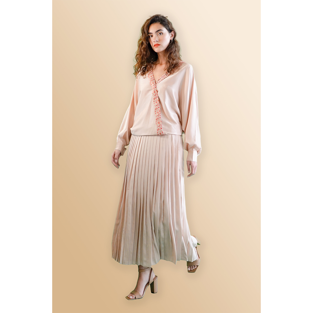 Pierce into a world where grace meets effortless style in our pleated Fiona Skirt. Designed for the modern muse, this skirt dances with the wind, creating a silhouette that’s both timeless and enchanting. The fabric drapes beautifully while holding all the delicate pleats in place adding classic elegance to your ensemble. Design elements include: