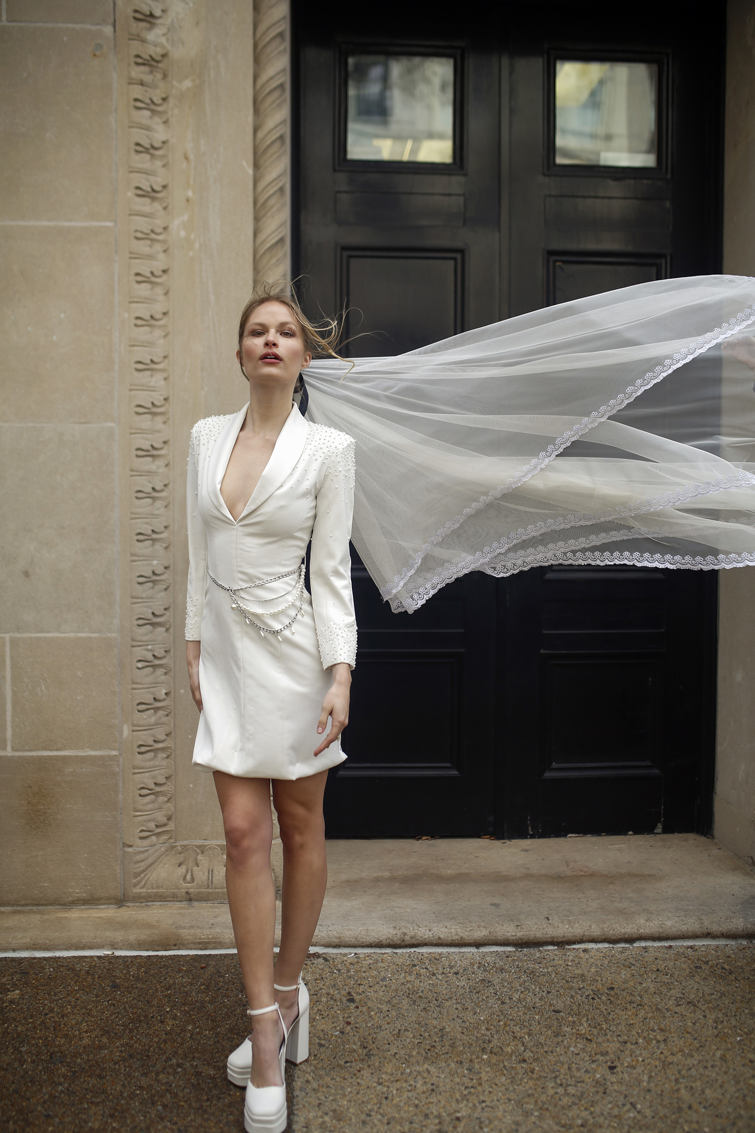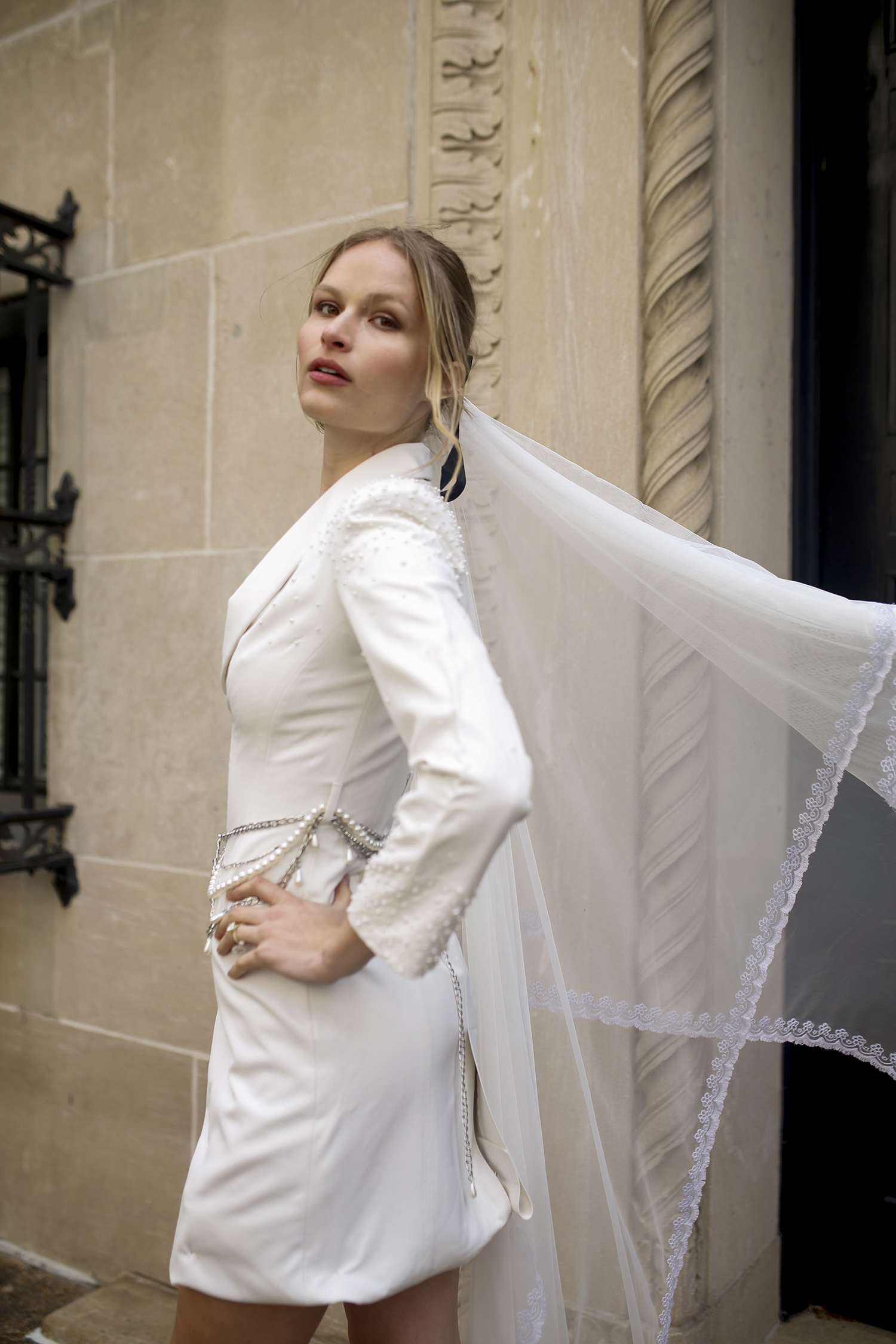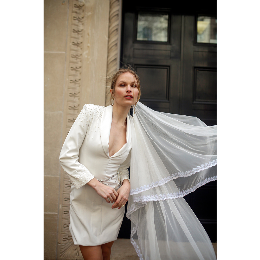 The Vanessa Veil embodies contemporary romance with a refined nod to tradition. Crafted from airy layers of sheer tulle, it floats effortlessly with every movement, creating a dramatic yet ethereal effect. Design summary includes: