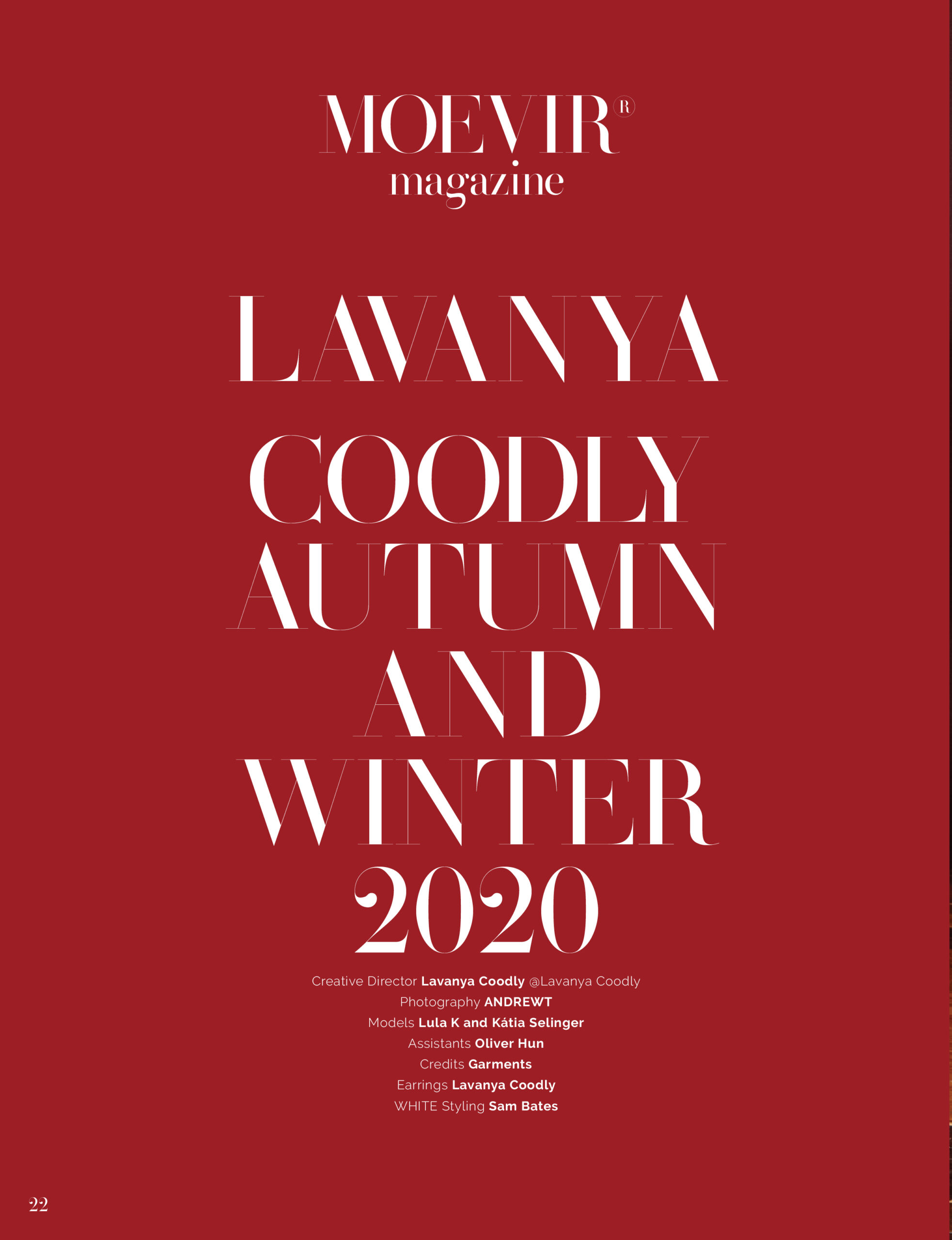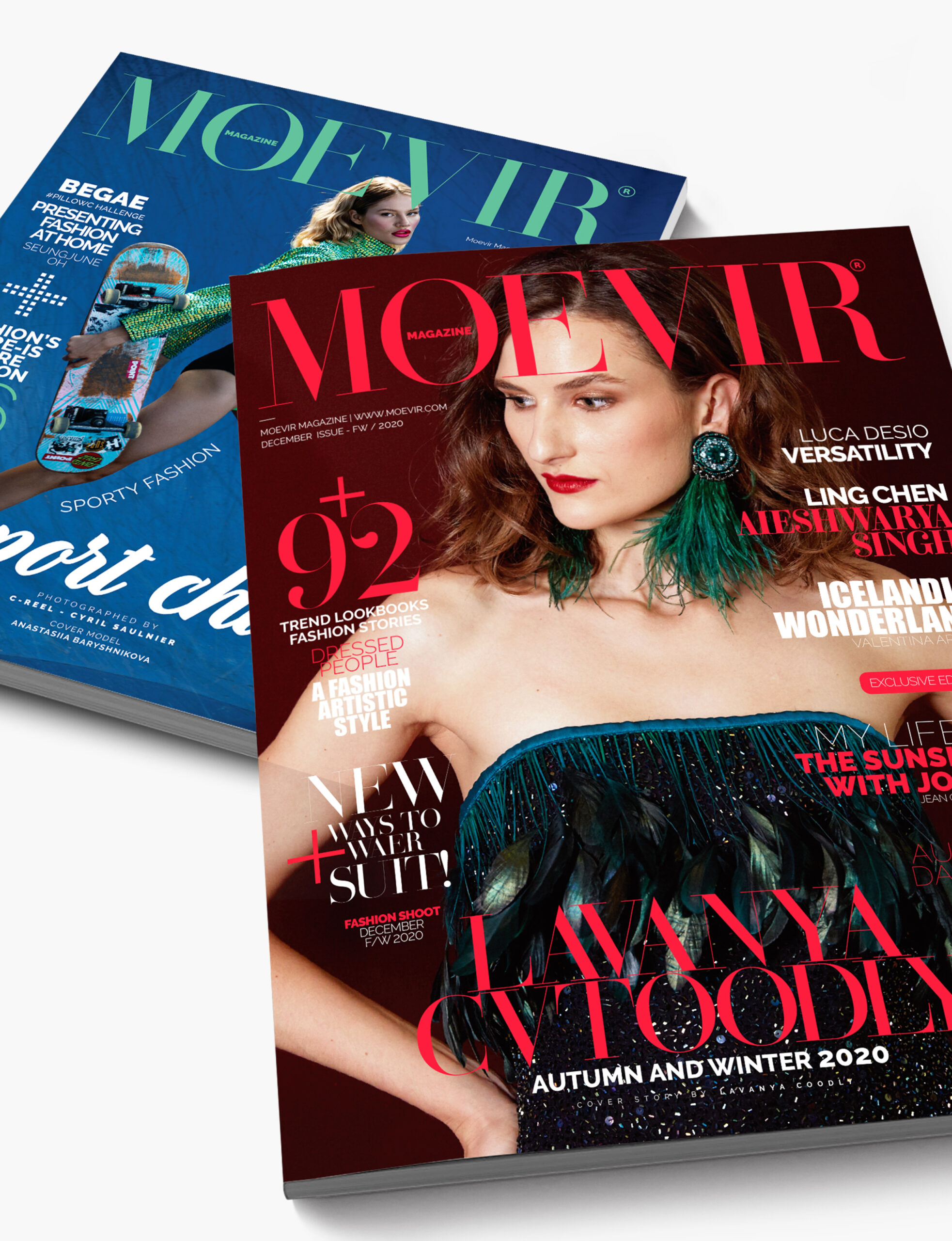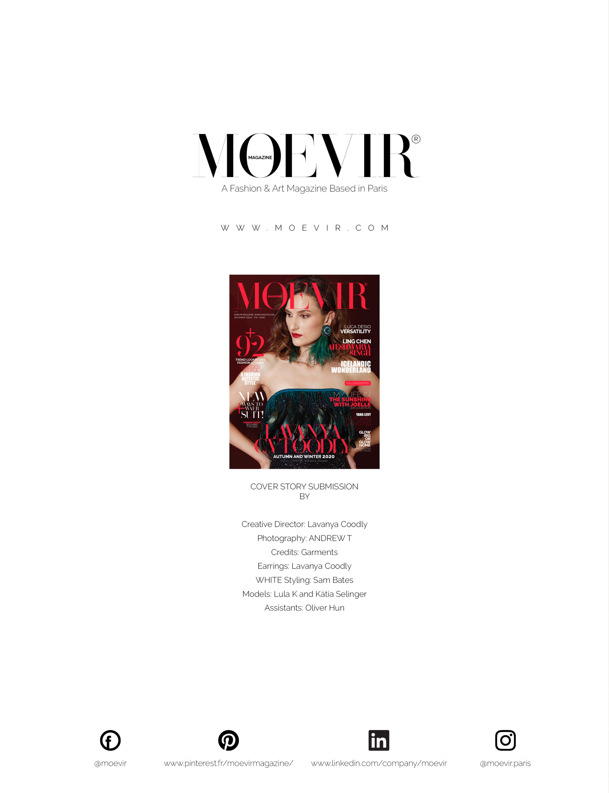 We are grateful to Moevir Magazine for their tasteful execution and feature of our looks in the December 2020 issue. Merci du fond du coeur!