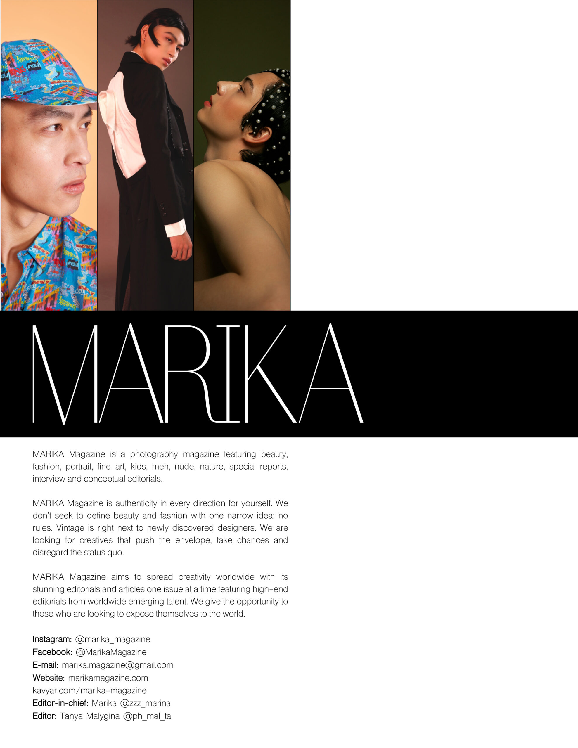 We are extremely appreciative of this first time feature on Marika Magazine. We hope to continue working with this beautiful, fashion forward publication. Thank you for the support, Marika Magazine!