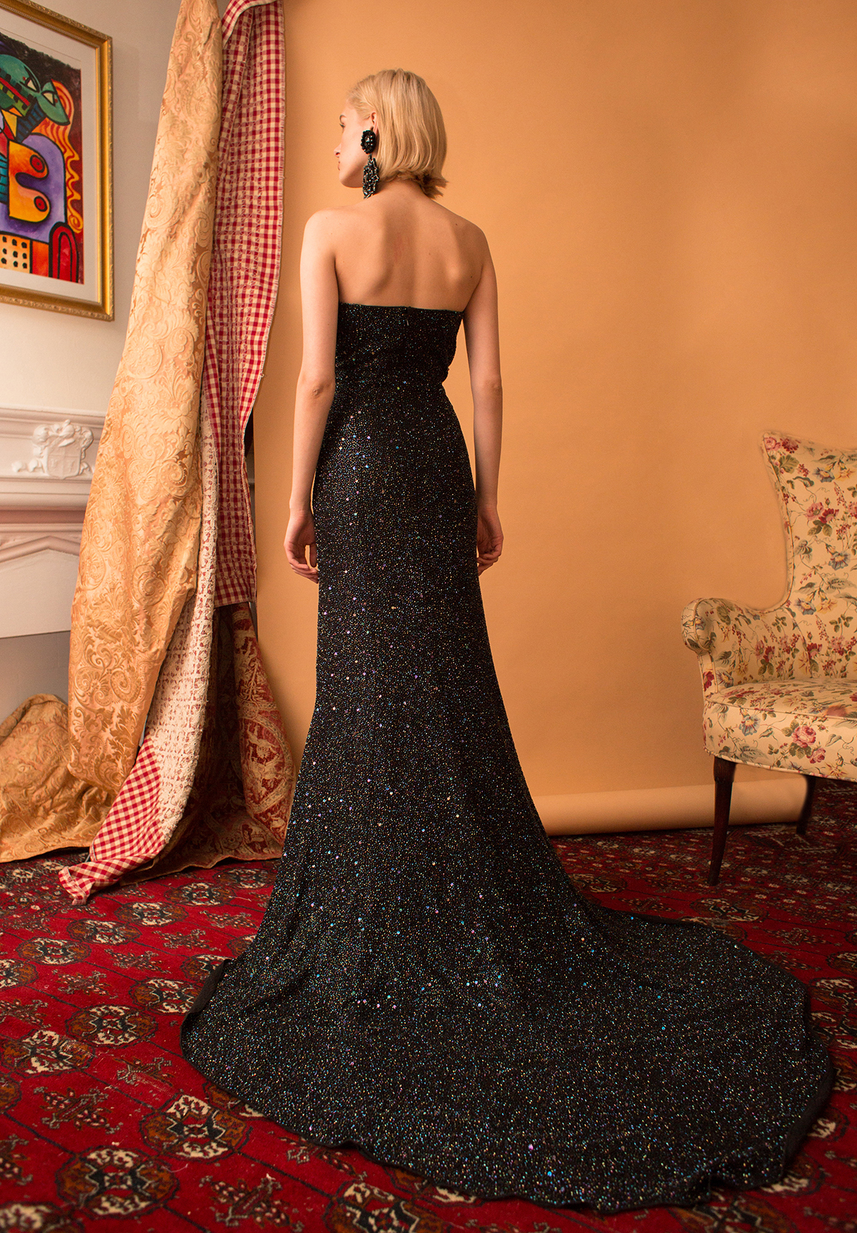 Exquisitely beaded, the Bernadette Gown spells elegance through and through. Featured design characteristics are: