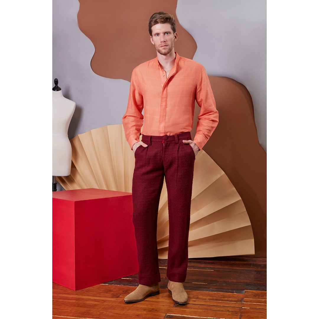 Liven up your off-duty edit with the Bradon Pant’s impeccable artistry and pair it with our Cedric Shirt or Radford Sweater. Available in Maroon and Black.