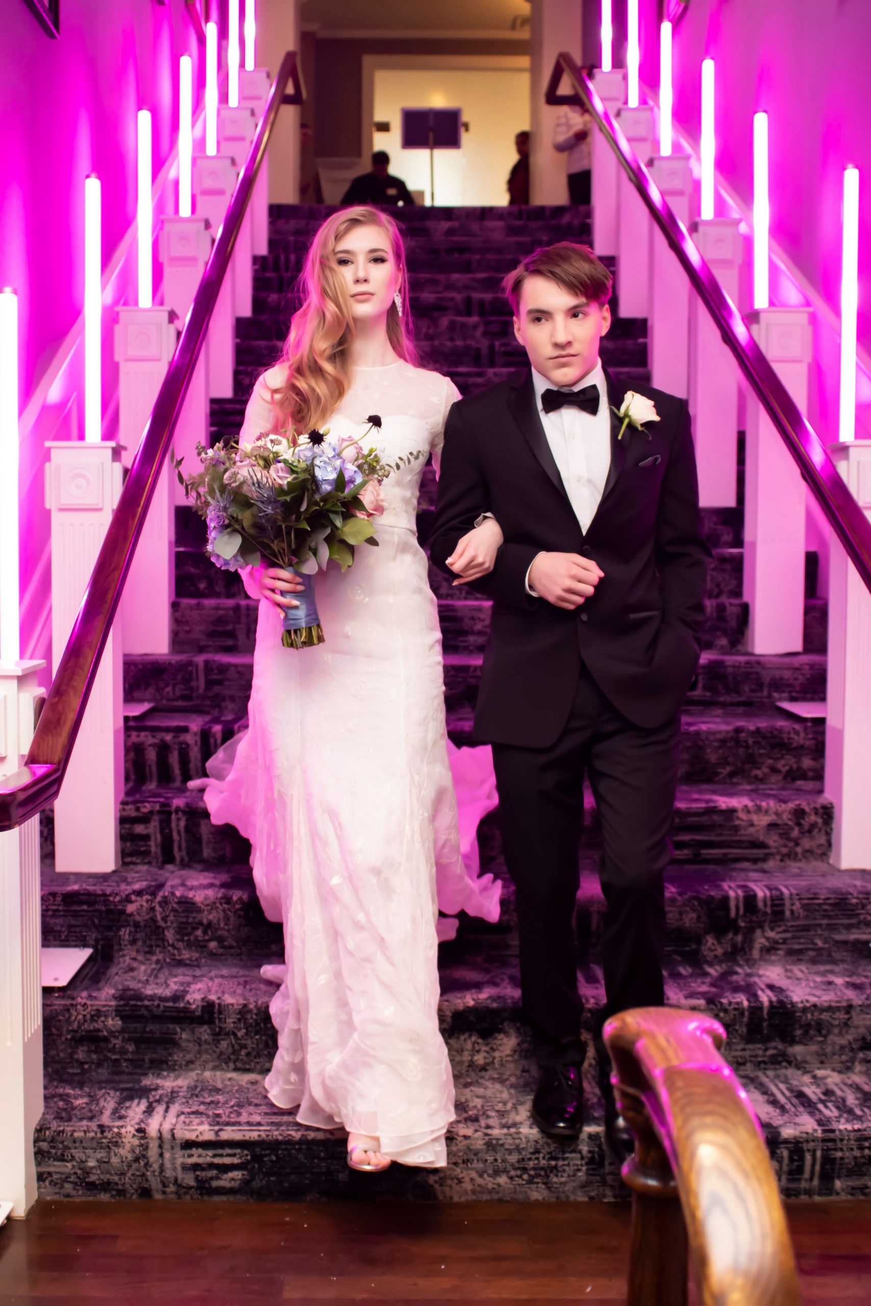 Floor-length fitted silhouette with full sleeves and a flared hemline created in luxurious, embroidered crepe. Elegant boat neckline with floral embroidery throughout coupled with a dramatic train.
