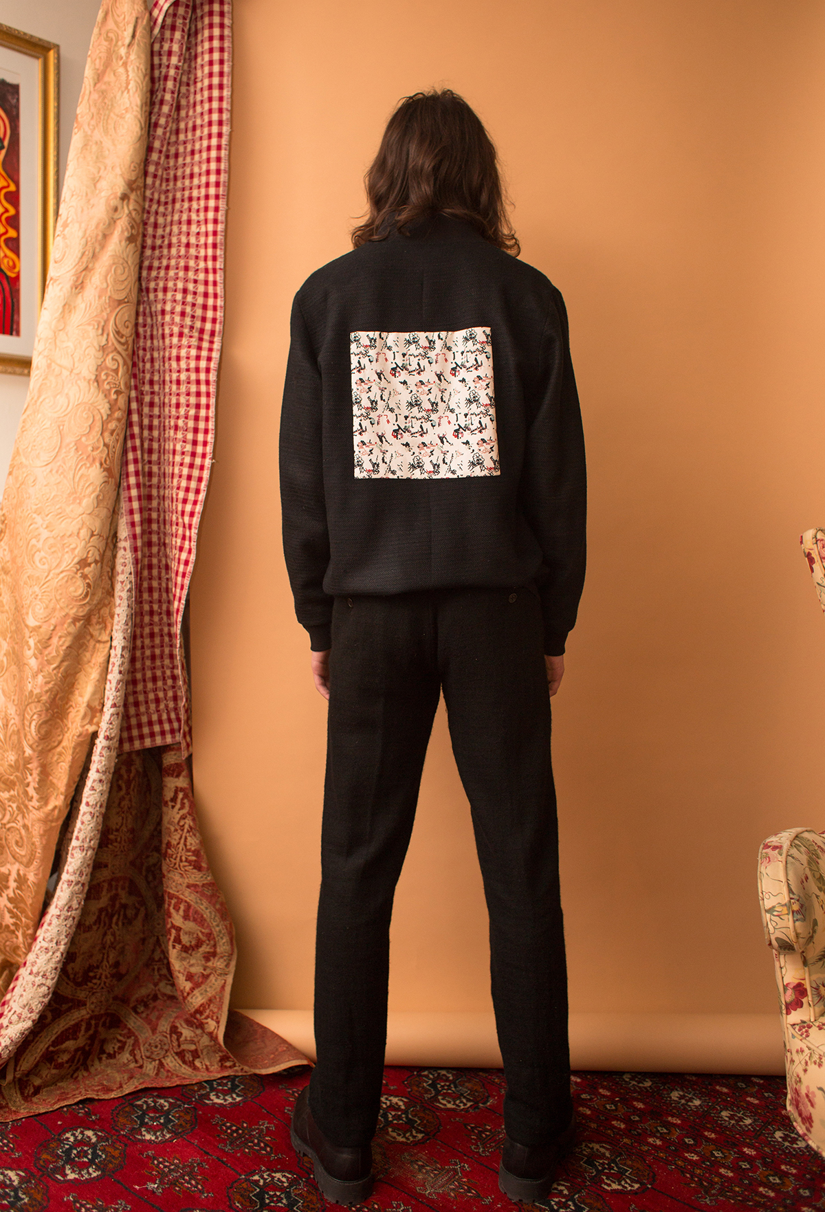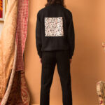 A wool bomber jacket made extra sleek with a strategically placed back graffiti patch, zip down closure and front pockets with button closure. A versatile outerwear that will add style to your urban and country living and keep the quintessential Lavanya Coodly man comfortable and stylish in both scenarios.