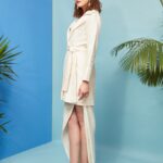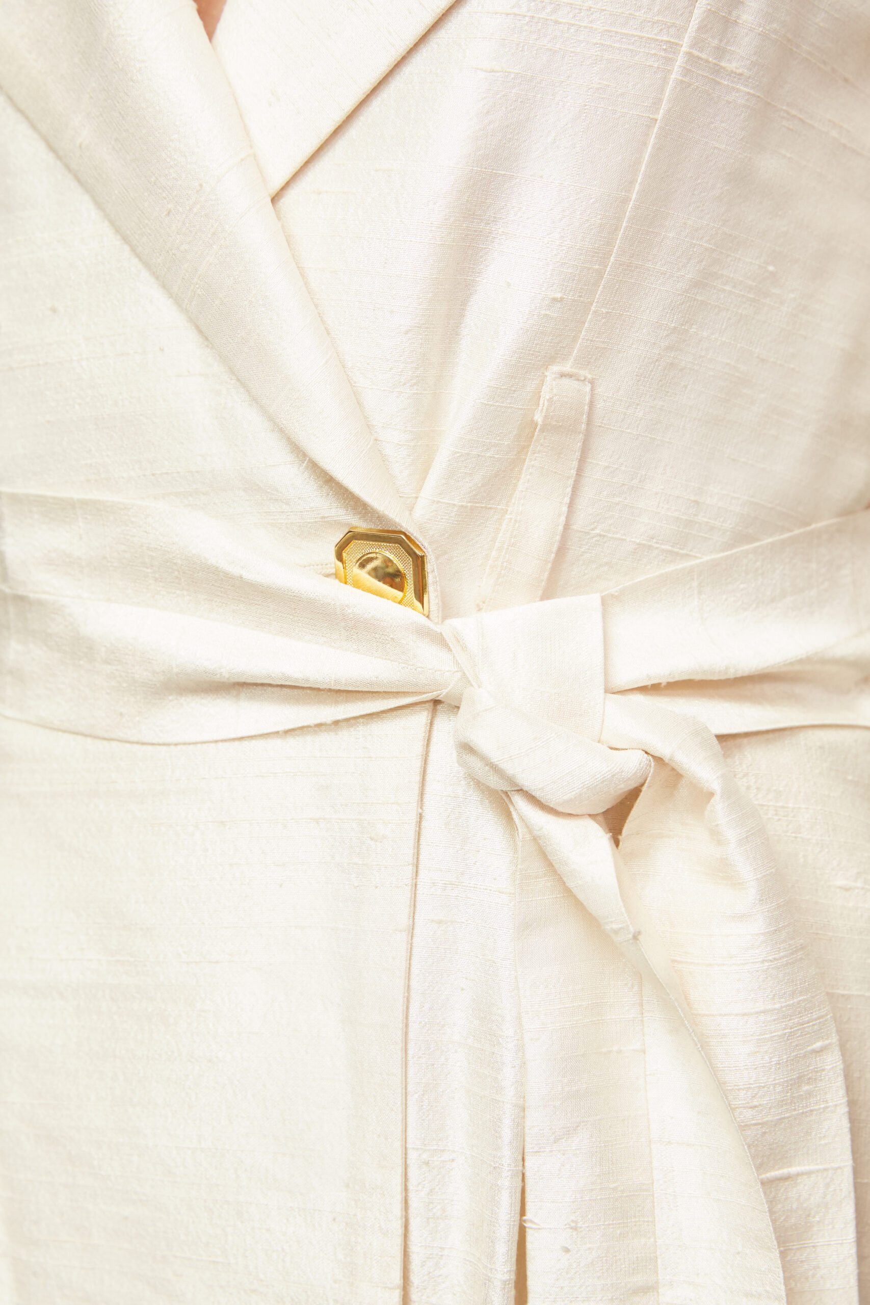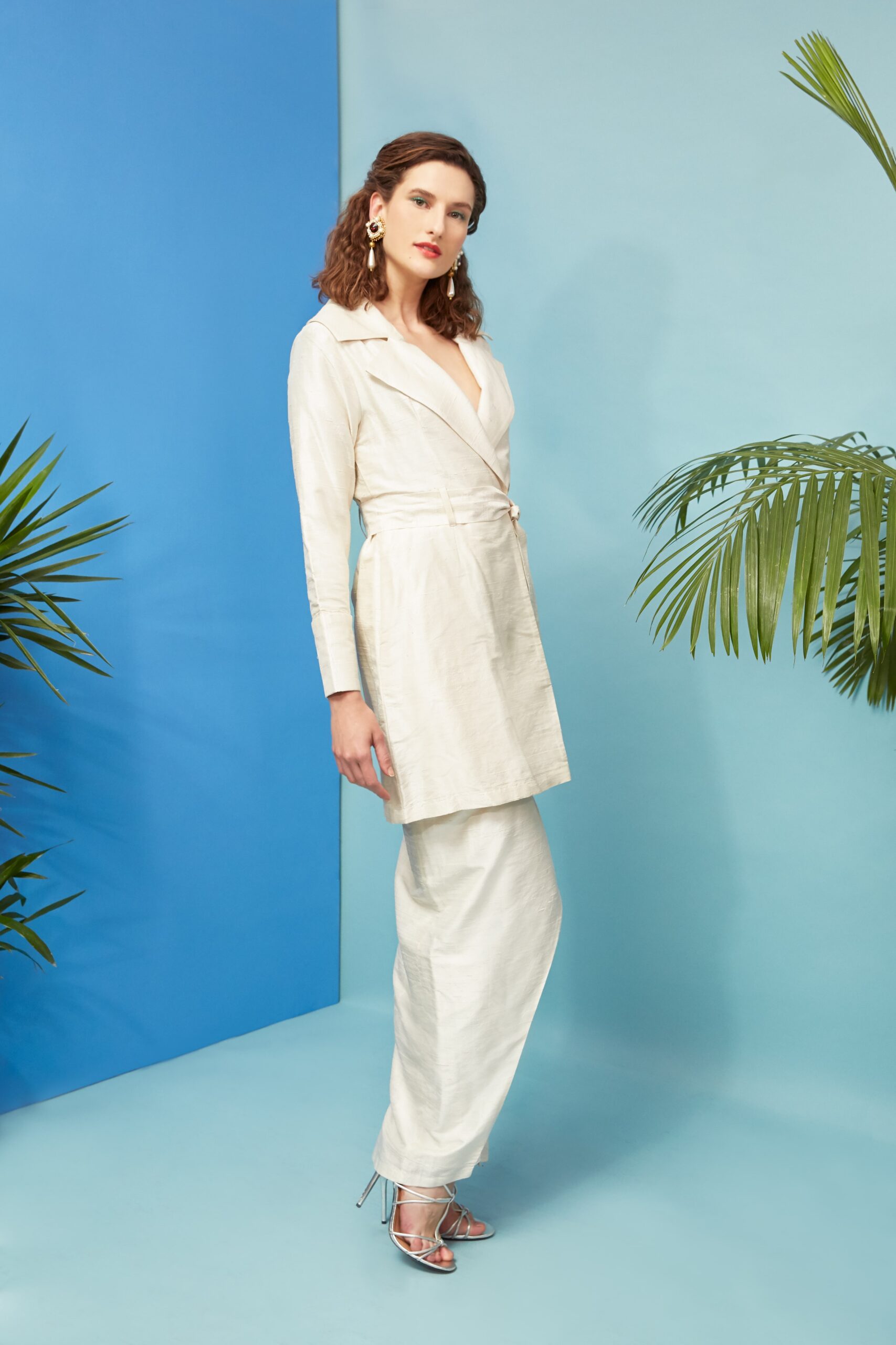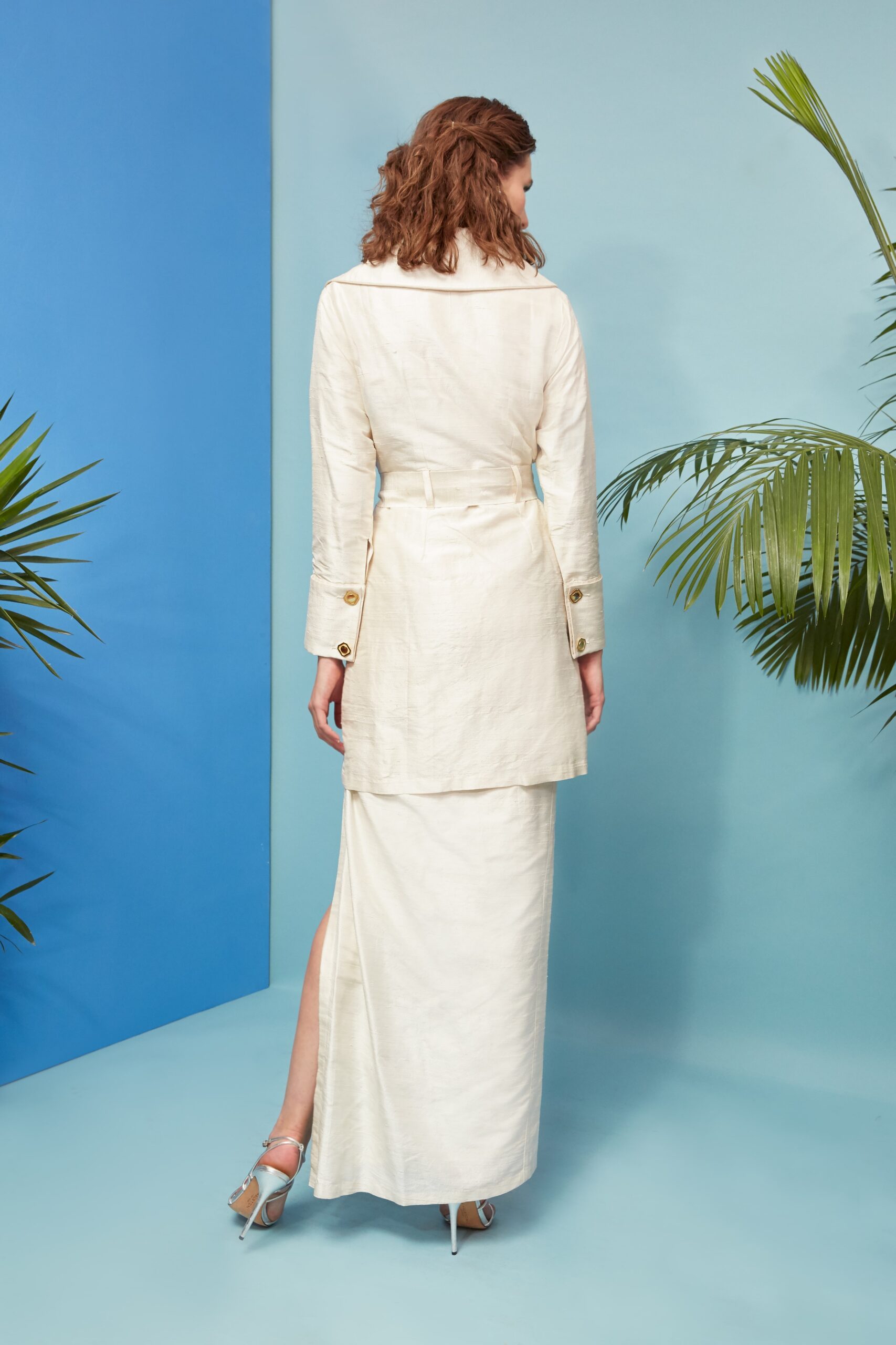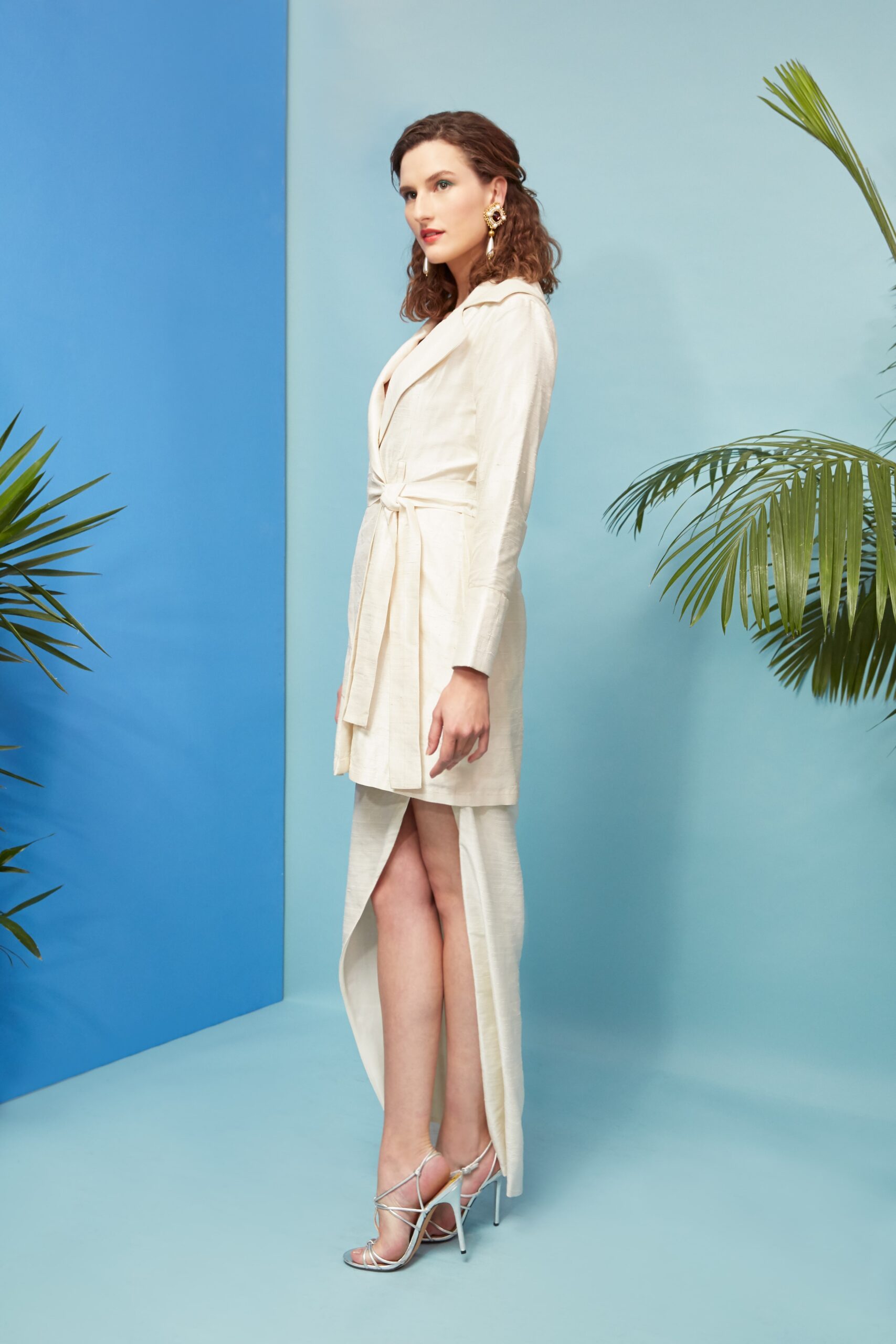 The Martina trench coat is 100 % silk for the Lavanya Coodly woman.