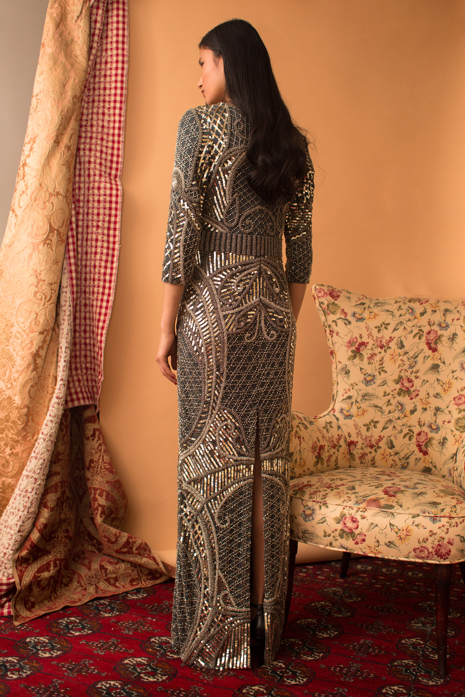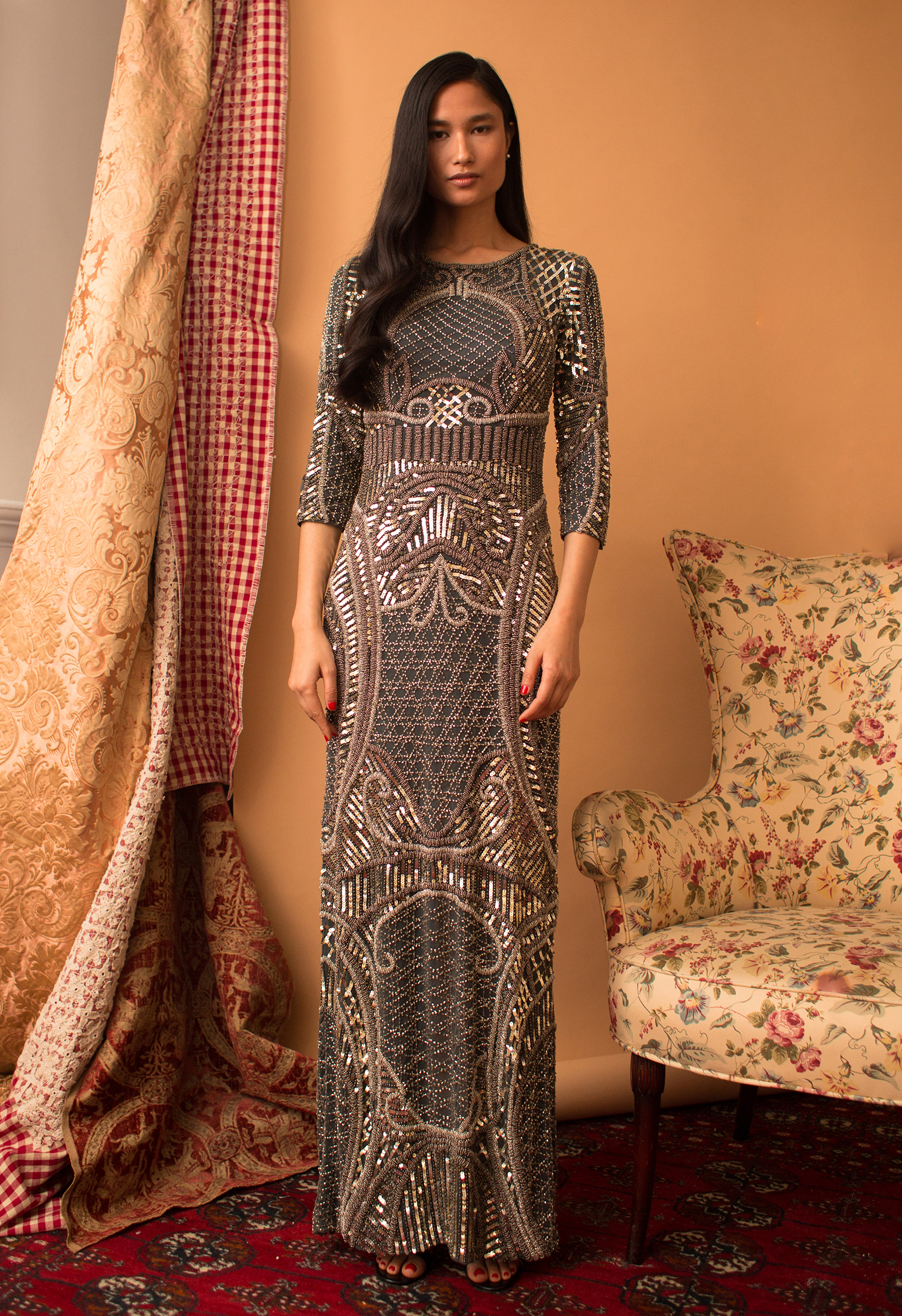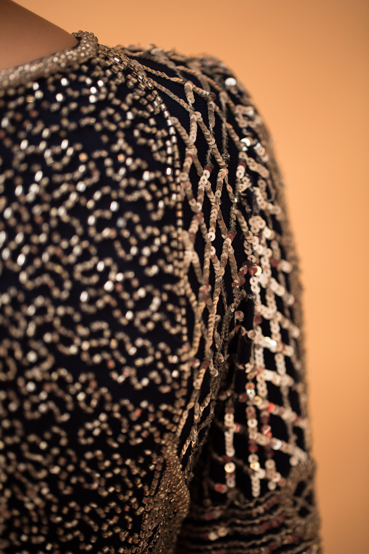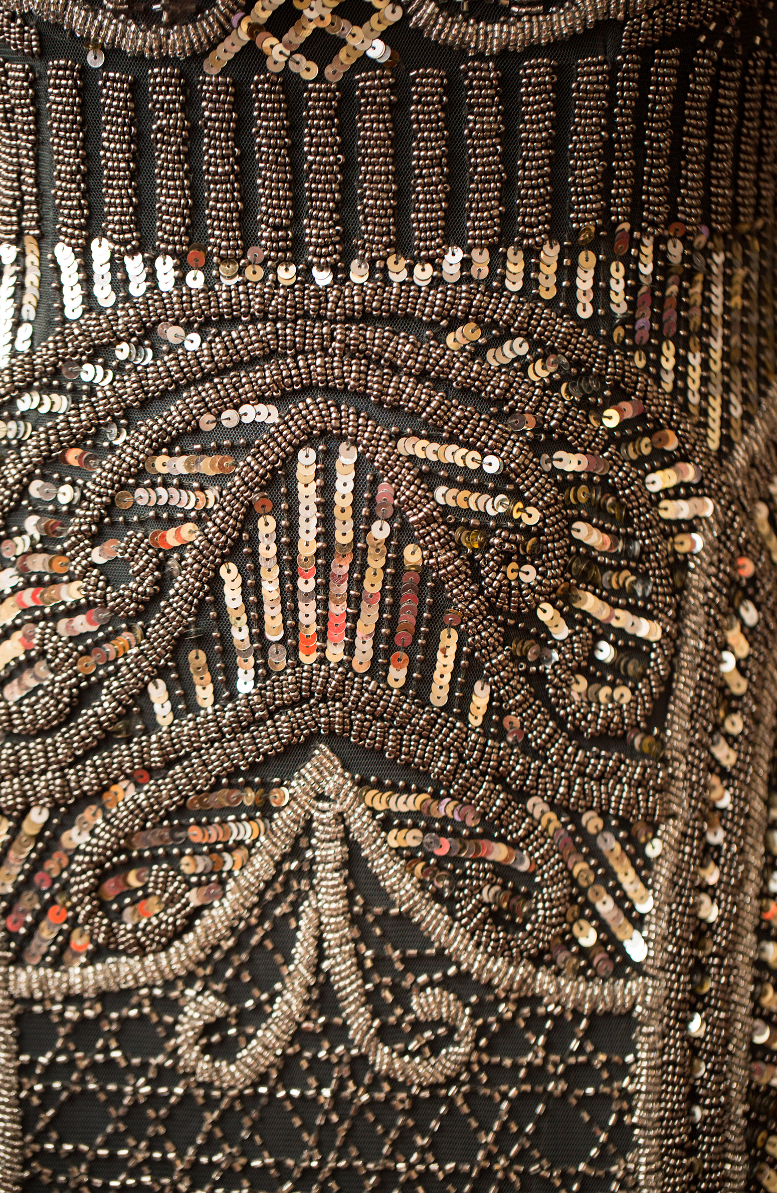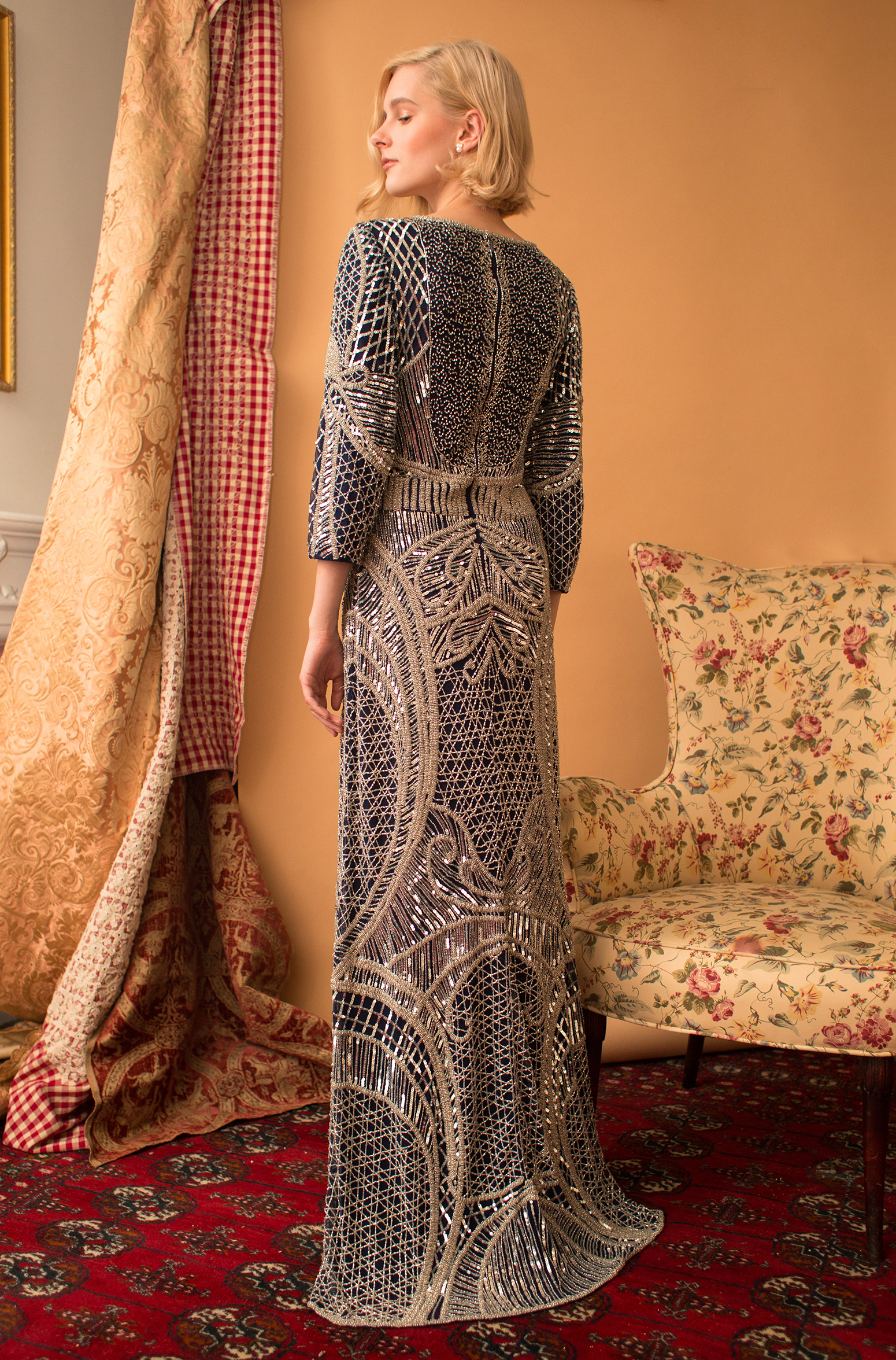 The Renée Gown is an intricately hand-embroidered piece that is an homage to the grandeur of the Art Deco era. Main design features include: