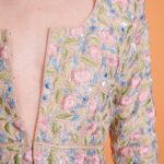 Undeniably feminine and majestic, the Roanne Jacket is a garden of intricate floral motifs. This masterpiece features a scallop neckline to highlight the demure collarbones of the feminine form. Framed with elongating long sleeves and finished off with an alluring peplum silhouette, this jacket is our signature couture jacket . The label’s distinct artistic methods and techniques are perfectly highlighted throughout the embroidery and embellishments. Design summary includes:
