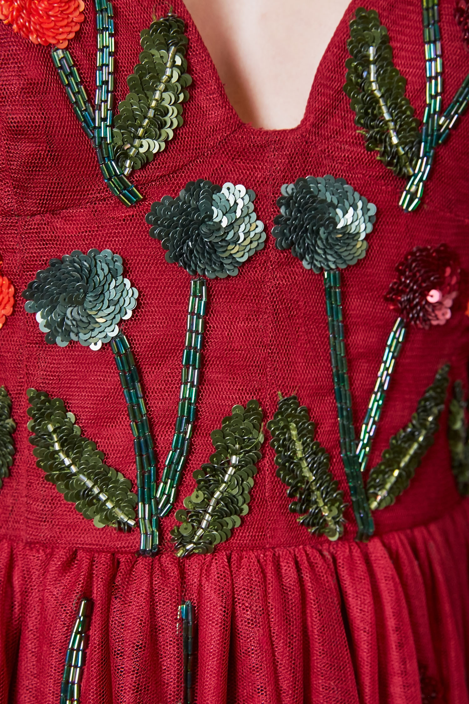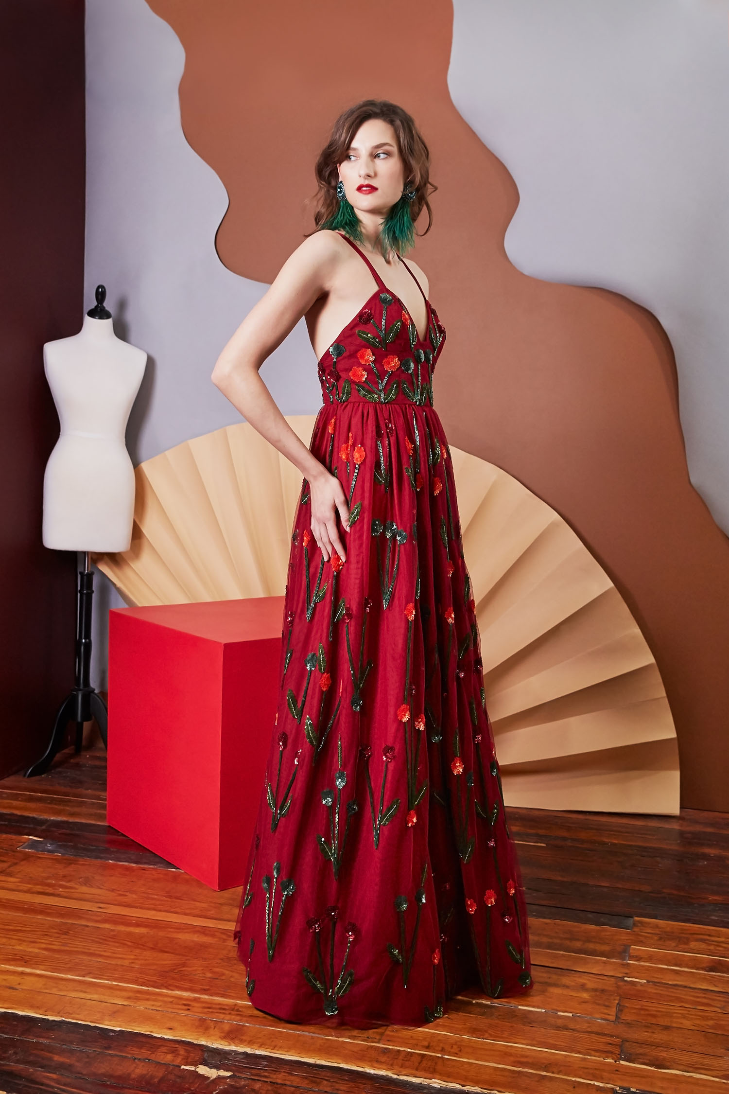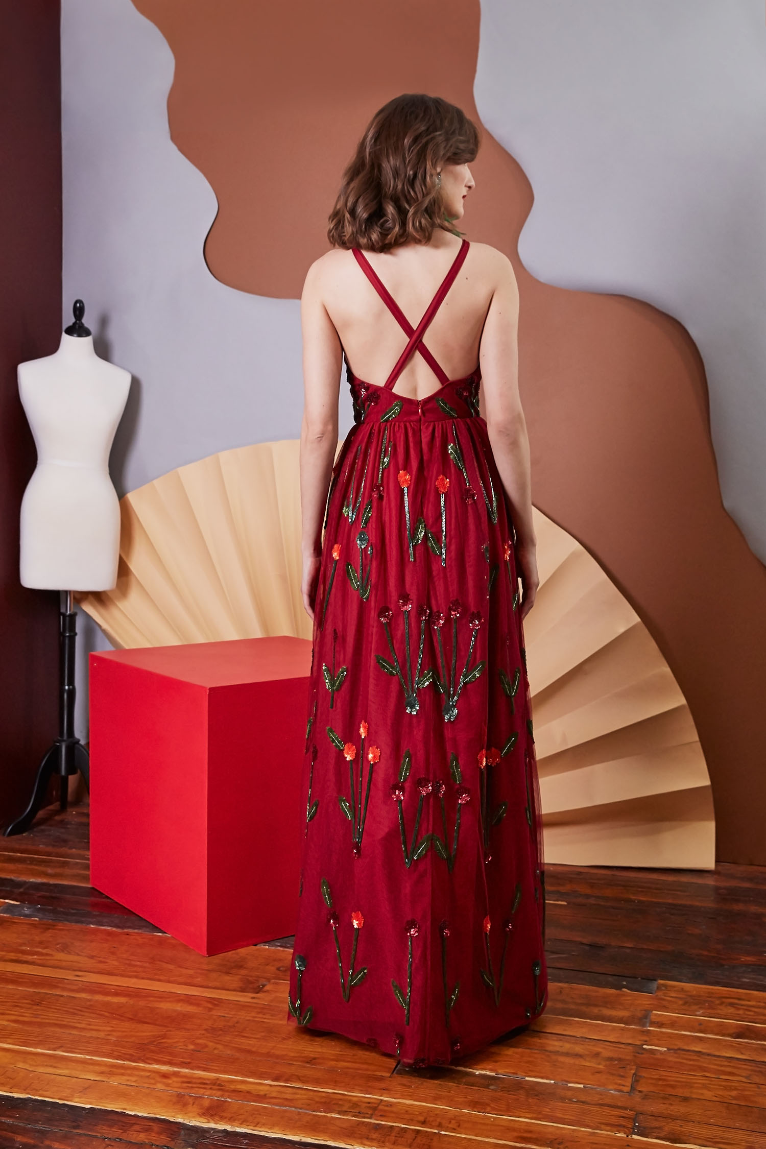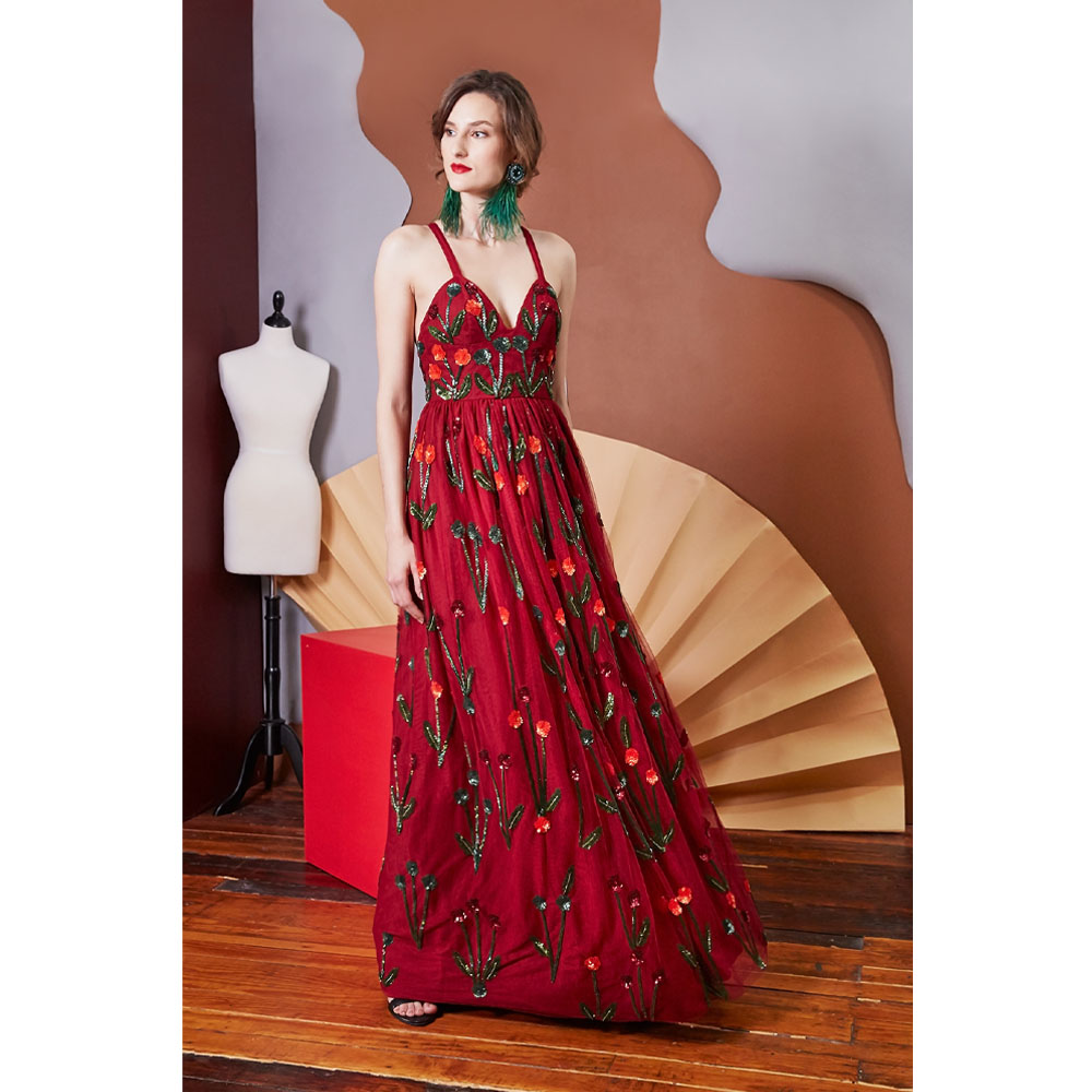 The Sylvia Gown is a sophisticated floor-length gown adorned with the signature Lavanya Coodly hand-applied floral embellishments. Stylish elements include: